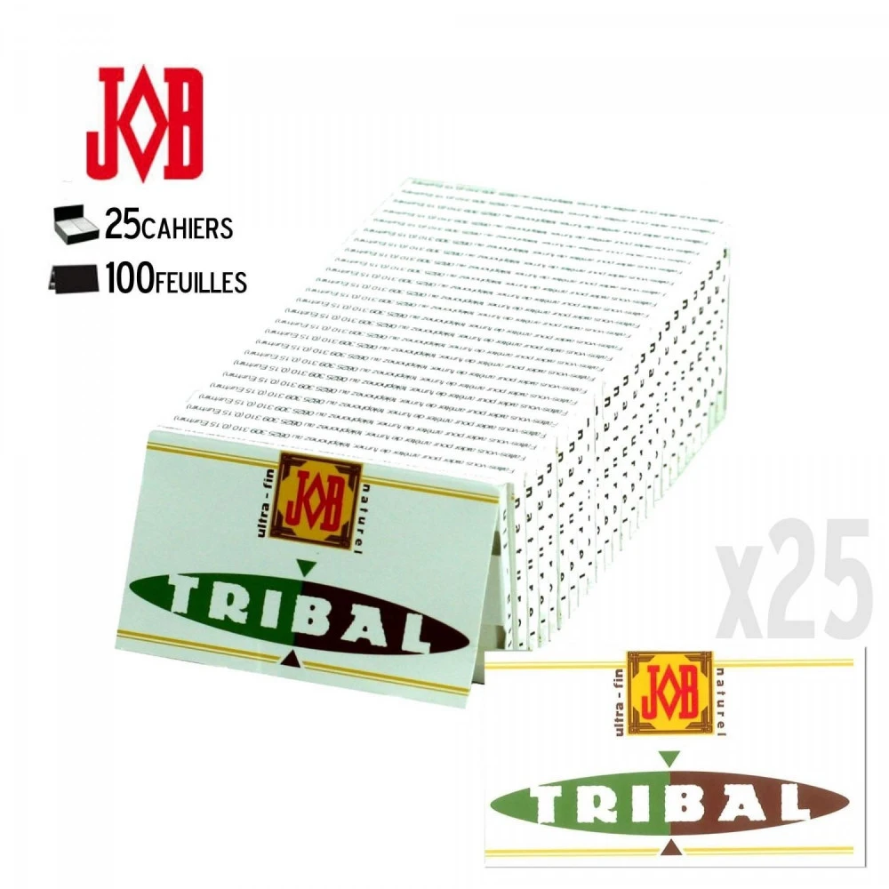 Lot de 25 Cahiers de feuilles à rouler Ultra-Fines de marque JOB.Les feuilles à rouler Job Tribal sont de qualité, filigrané et de fabrication Française.