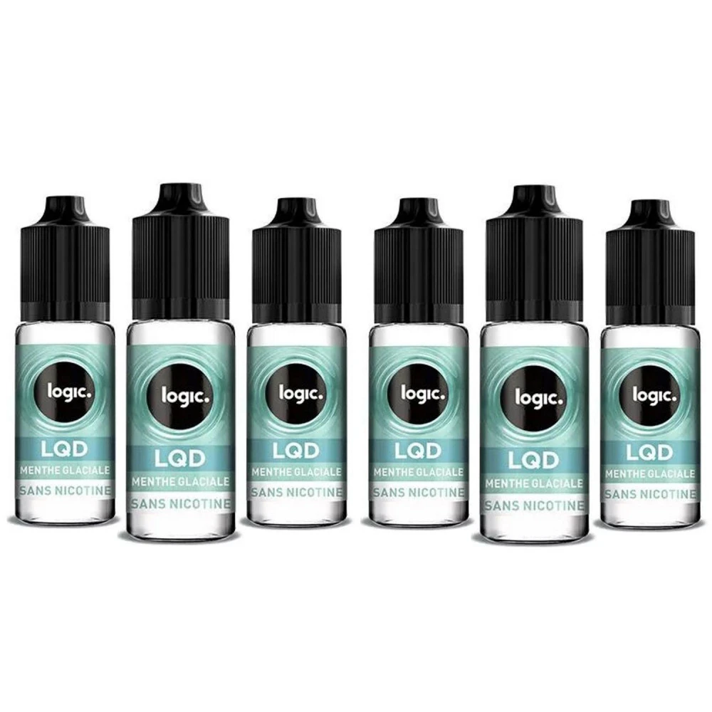 6 Flacons de 10 ml en plastique de E-Liquide Logic LQD goût Menthe Glaciale sans nicotine