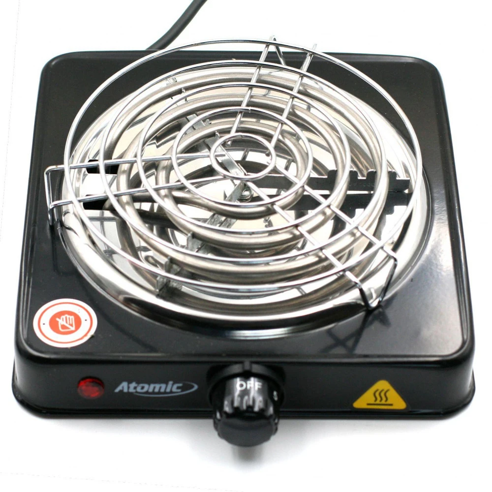 Plaque de cuisson allume charbon avec thermostat automatique, témoin lumineux marche/arrêt, revêtement antiadhésif d’une puissance de 1000 W