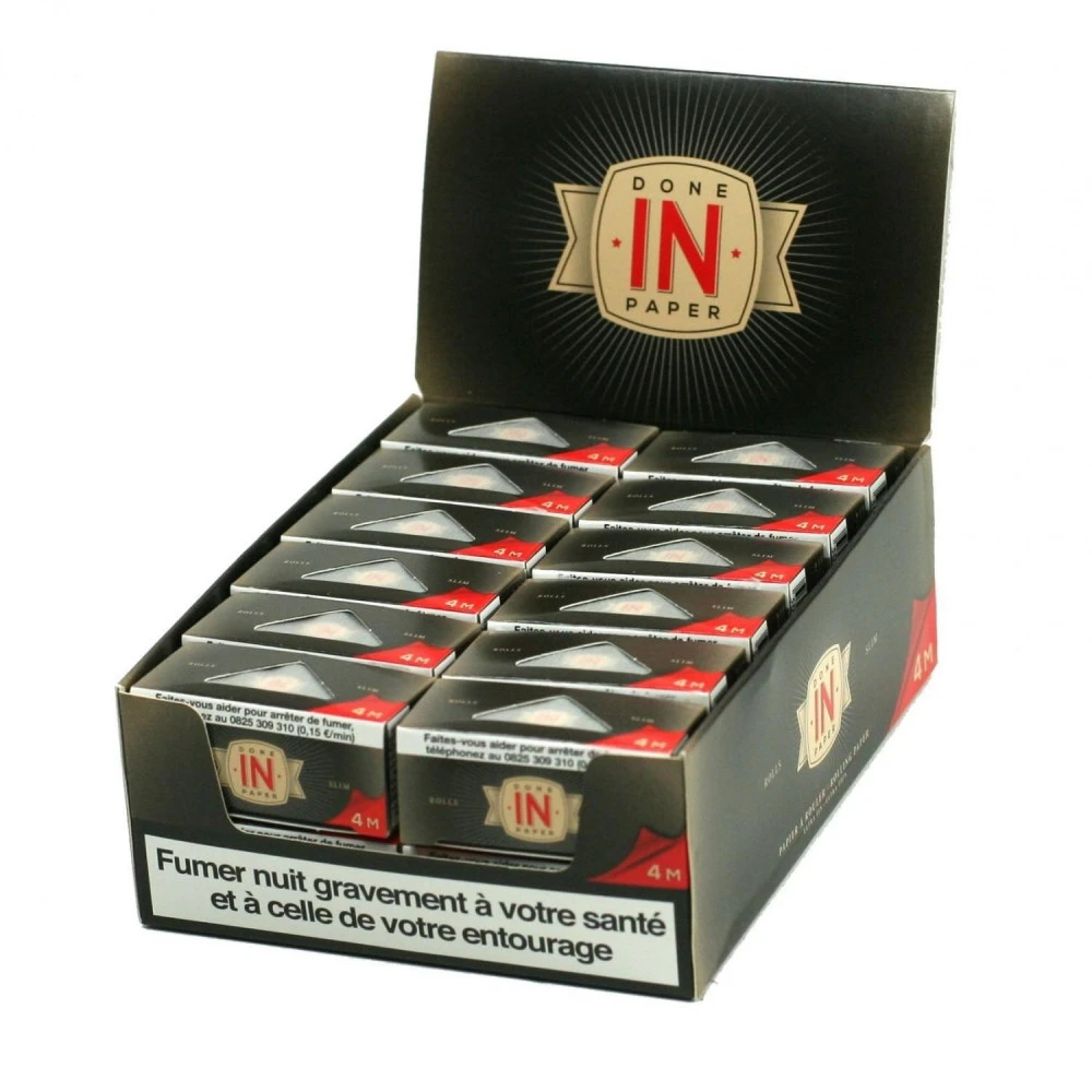 Les rouleaux ‘Done In Paper’ d’une longueur de 4 mètres et de 43 mm de largeur sont vendus en boite de 24 rouleaux pour permettre aux fumeurs de profiter du meilleur prix !