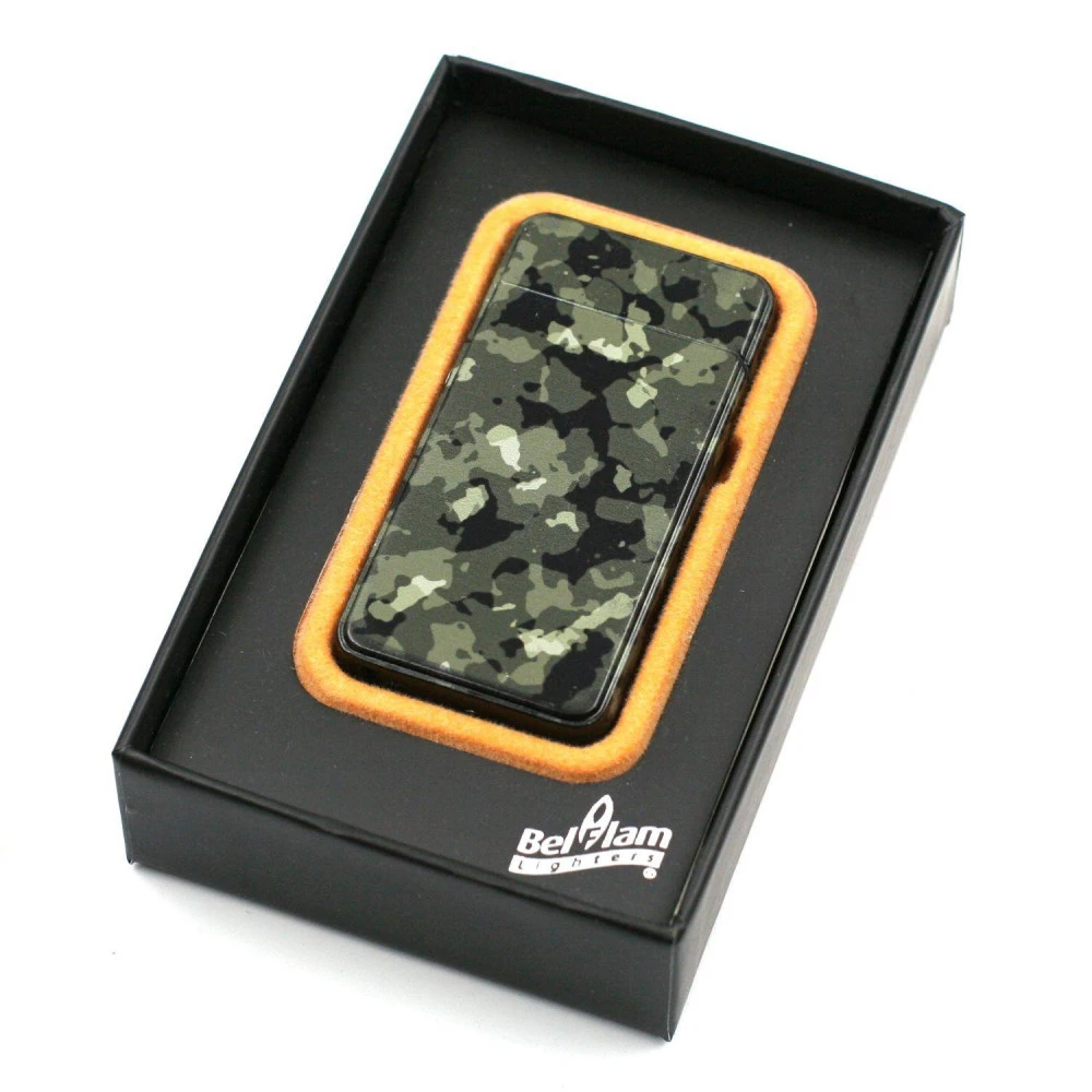 Ce briquet Belflam design Military fonctionne sur batterie est livré dans son coffret cadeaux comportant un cable pour son rechargement via un port USB.