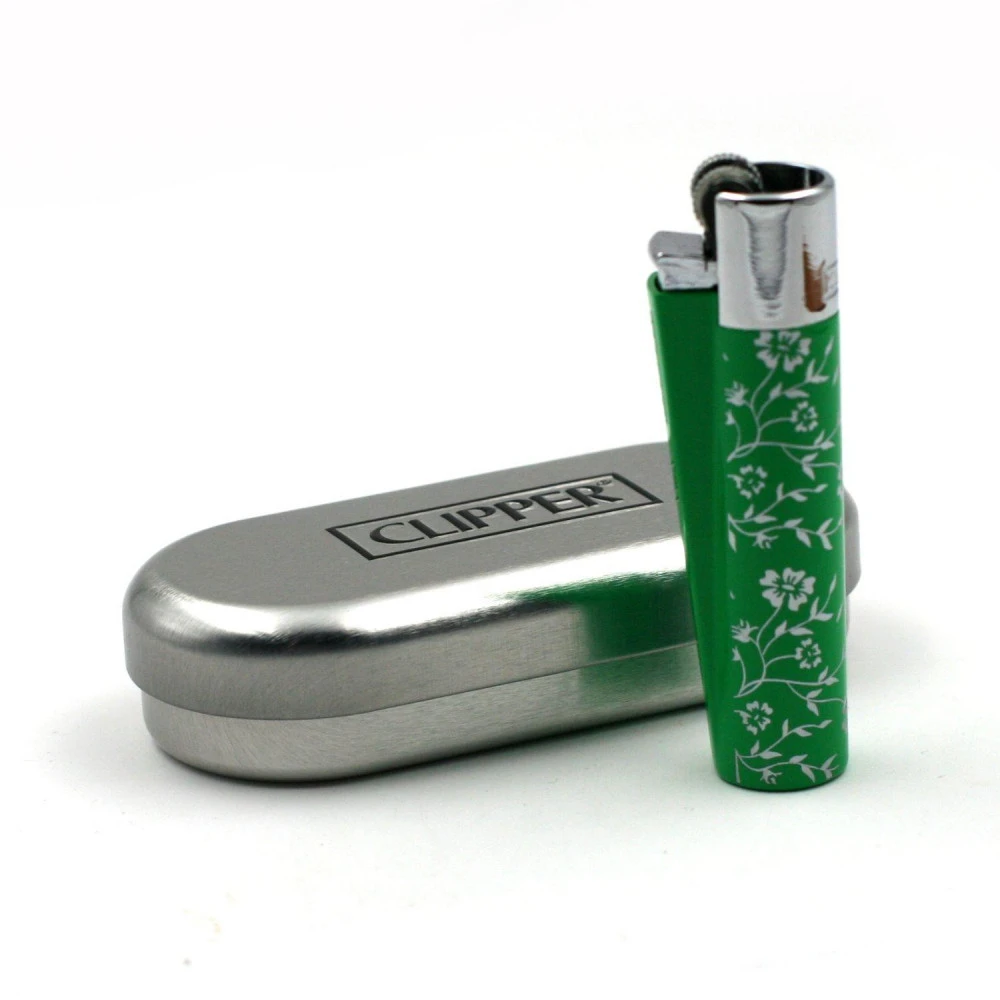 Briquet en métal en coffret de la marque Clipper, Green Pattern. Une série limitée CLIPPER livrée dans son étui métal.