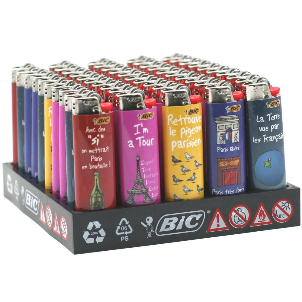 Plaquette complète avec 50 briquets BIC J26 (grand format) sur le thème de Paris. Avec 5 modèles différents comprenant chacun une illustration humoristique sur la vie à Paris. Venez découvrir cette collection et ses illustrations aussi drôles que colorées !