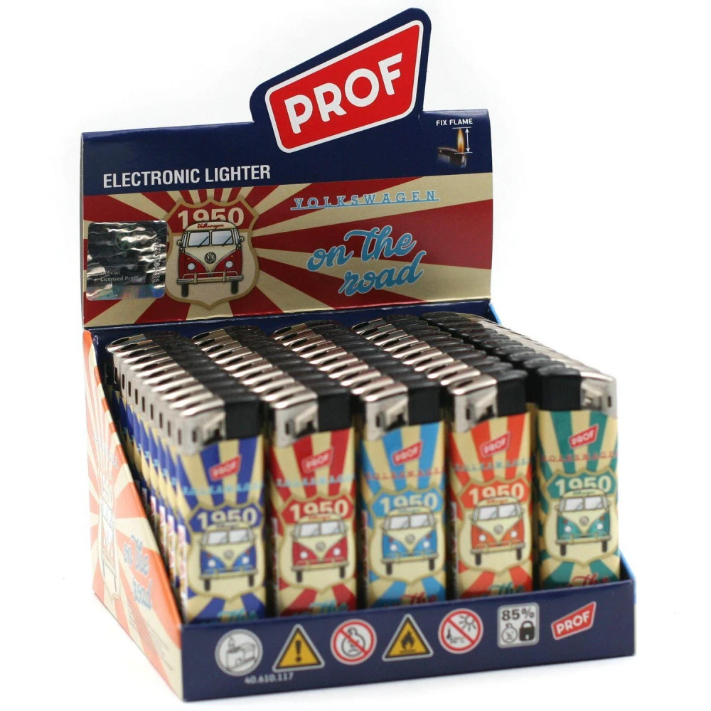 Plaquette de 50 Briquets électroniques Prof V.W, rechargeables et leur flamme est réglable